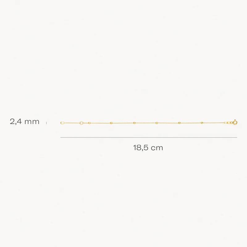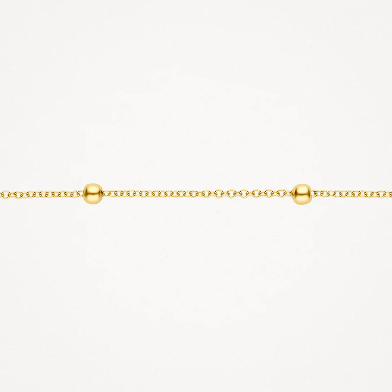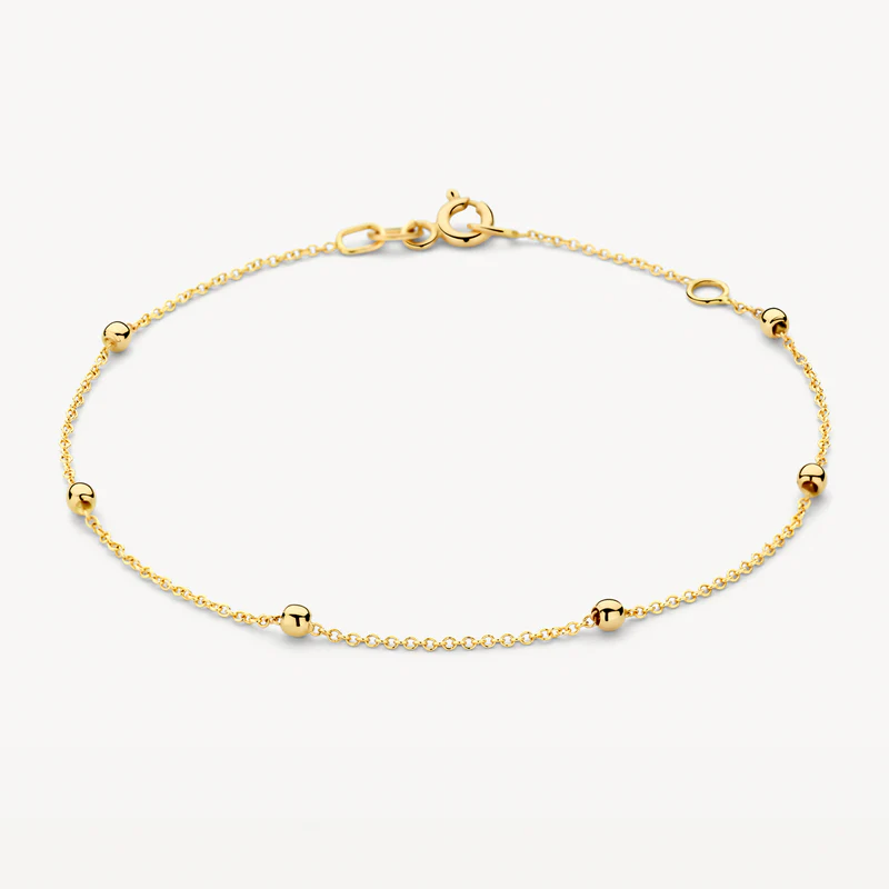 De zes gouden bolletjes geven deze 14k geelgouden armband met ankerschakels een speelse uitstraling. De totale lengte is 19 cm. Draag deze stijlvolle armband op zichzelf of combineer hem met het bijpassende collier 3145YGO.