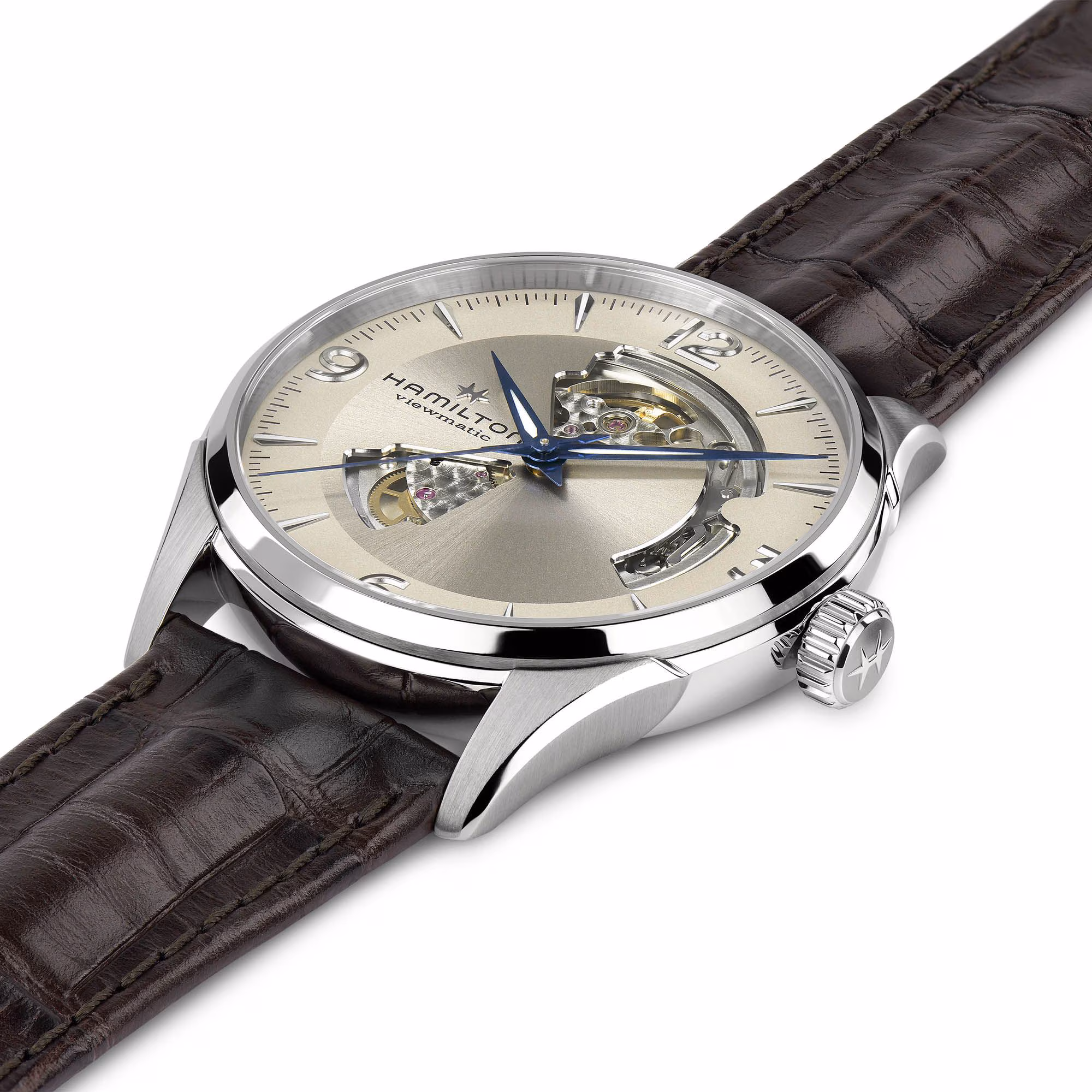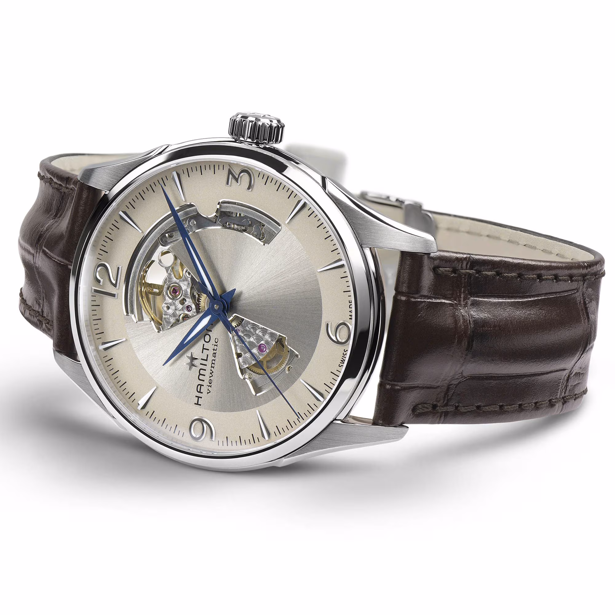 De Jazzmaster Open Heart stelt de perfecte balans voor tussen traditie en innovatie en biedt een fascinerende blik op het Zwitserse precisie-automatische uurwerk in actie. Door het gebruik van hoogwaardige materialen en een waaier aan wijzerplaat- en bandcombinaties, laat Hamilton zich met deze collectie van zijn beste kantje zien.