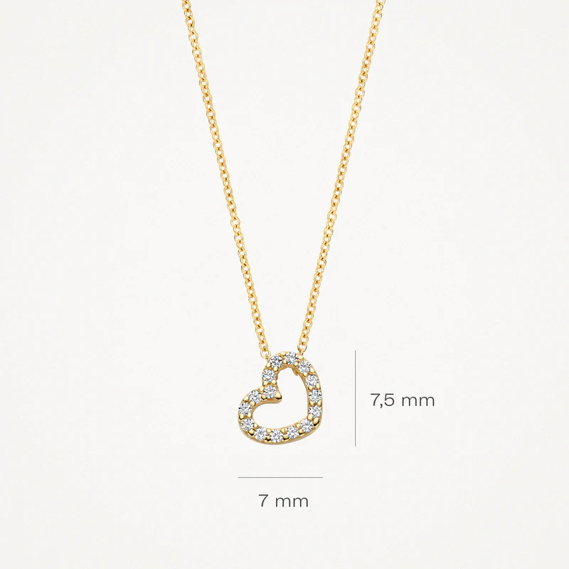 Deze 14k geelgouden ketting met hartvormige hanger bezet met zirkonia is een prachtig cadeau voor een geliefde – of voor jezelf natuurlijk. De hanger is 7,5 bij 7 mm. Prachtig op zichzelf of in combinatie met andere sieraden uit onze collectie.