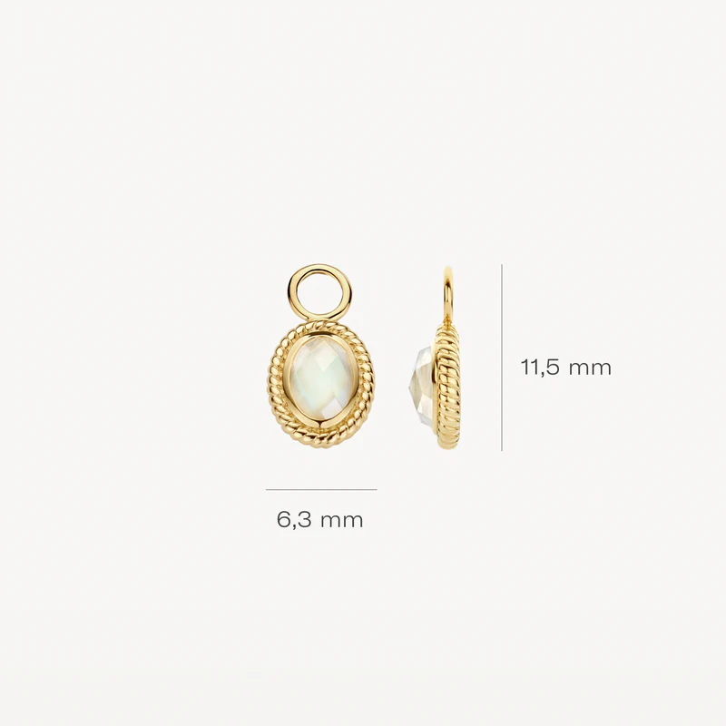 Deze oorbedels van 14k geelgoud met parelmoer en bergkristal omringd door een koordmotief stralen van alle kanten elegantie uit. De bedels zijn 11,5 mm hoog en 6,3 mm breed. Stijlvol op zichzelf of in combinatie met andere sieraden uit onze collectie, bijvoorbeeld collier 3169YMQ.