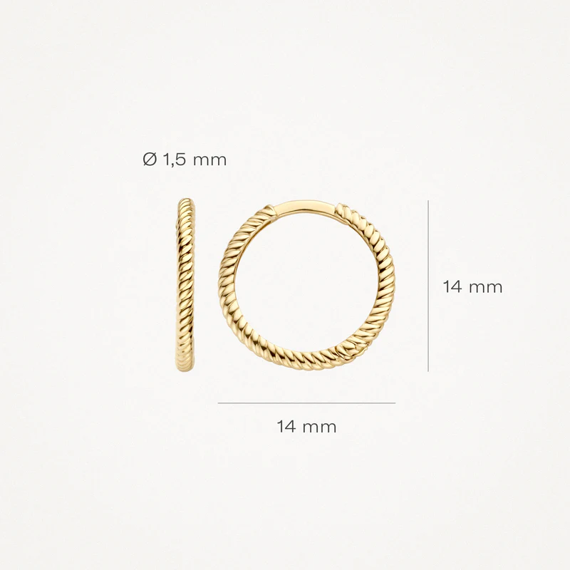 Oorringen met gedraaid motief 14 mm 14k goud