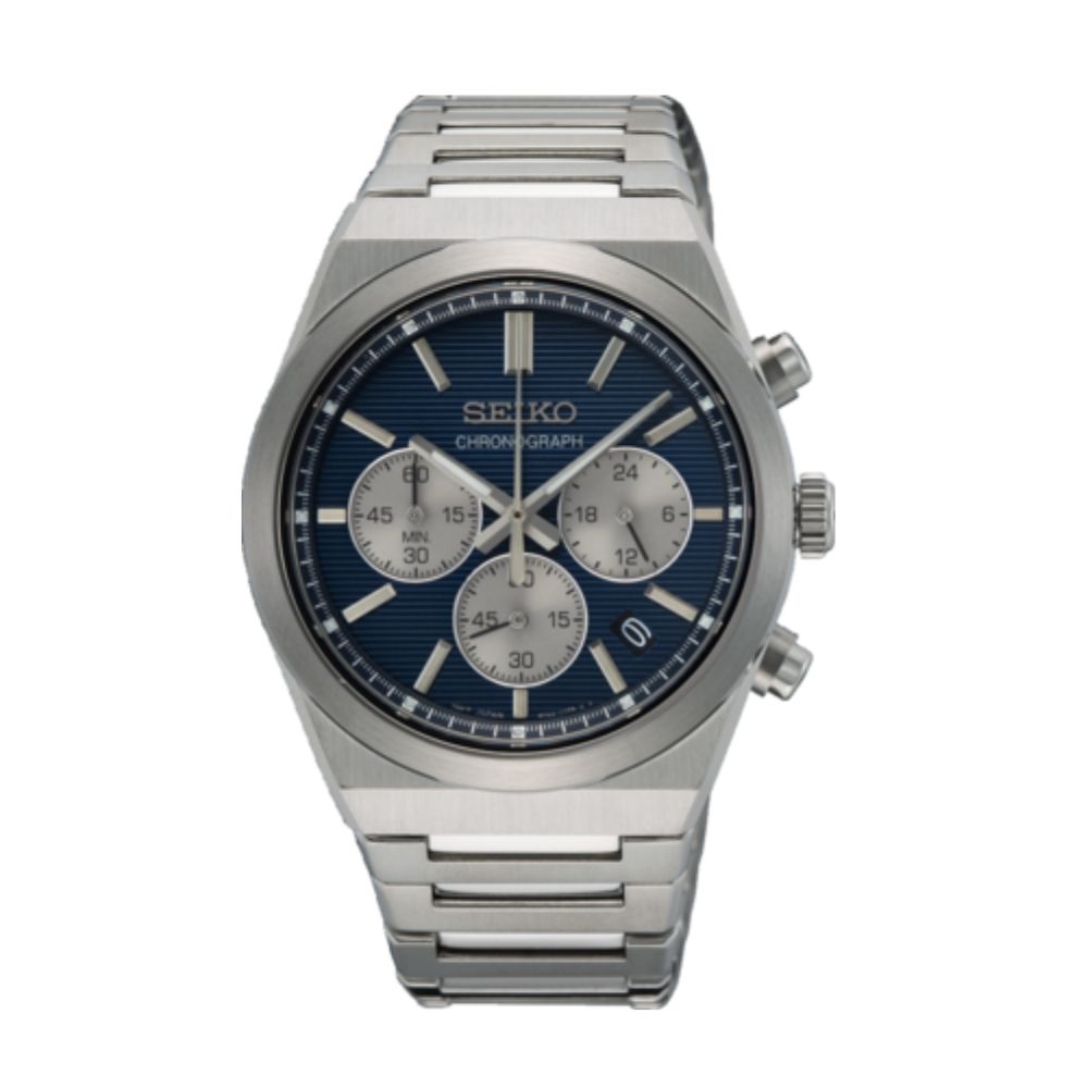 Het Seiko 8T63 kaliber is een analoge Quartz Chronograaf met datumweergave. De stopwatch meet tot maximaal 60 minuten in stappen van 1/5 seconde.