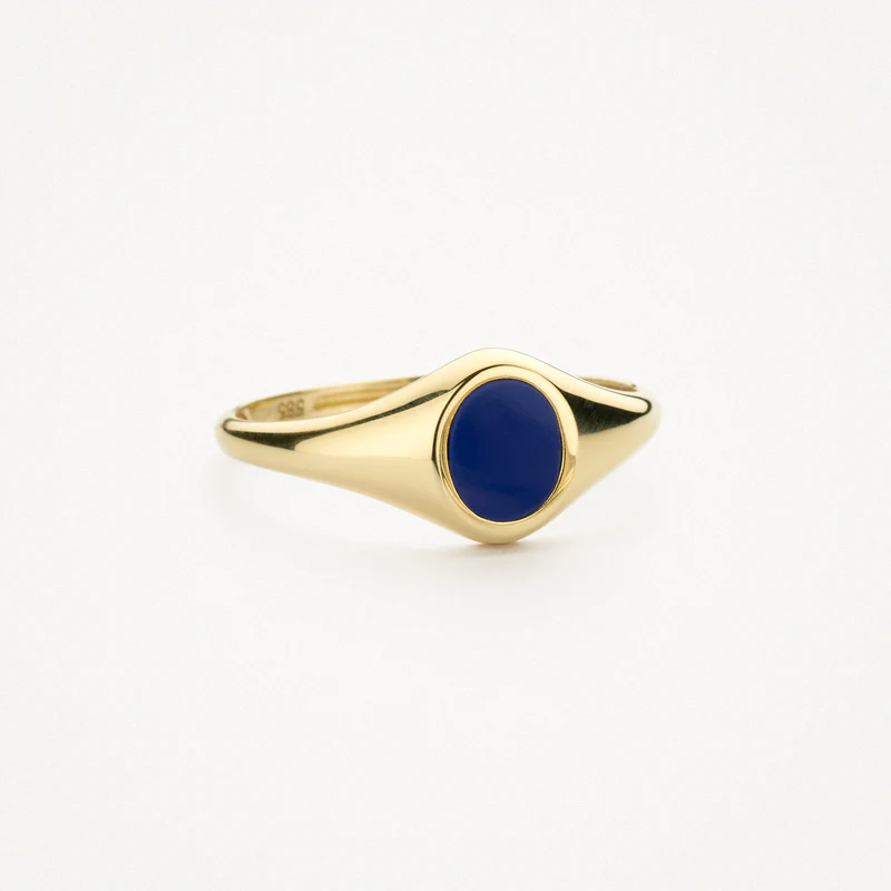 Blauwe lapis lazuli geeft deze 14k geelgouden ring een originele, eigentijdse look. De band heeft een doorsnede van 2,1 mm. Door het eenvoudige, klassieke ontwerp is de ring mooi te combineren met andere sieraden uit onze collectie.